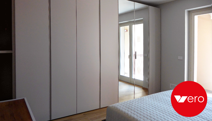 Questa volta la richiesta è stata quella di arredare la camera da letto della propria casa, cercando di ottenere un ambiente moderno, efficiente e rilassante. Il tutto doveva comprendere un armadio molto capiente, provvisto di specchi e di una colonna a giorno.