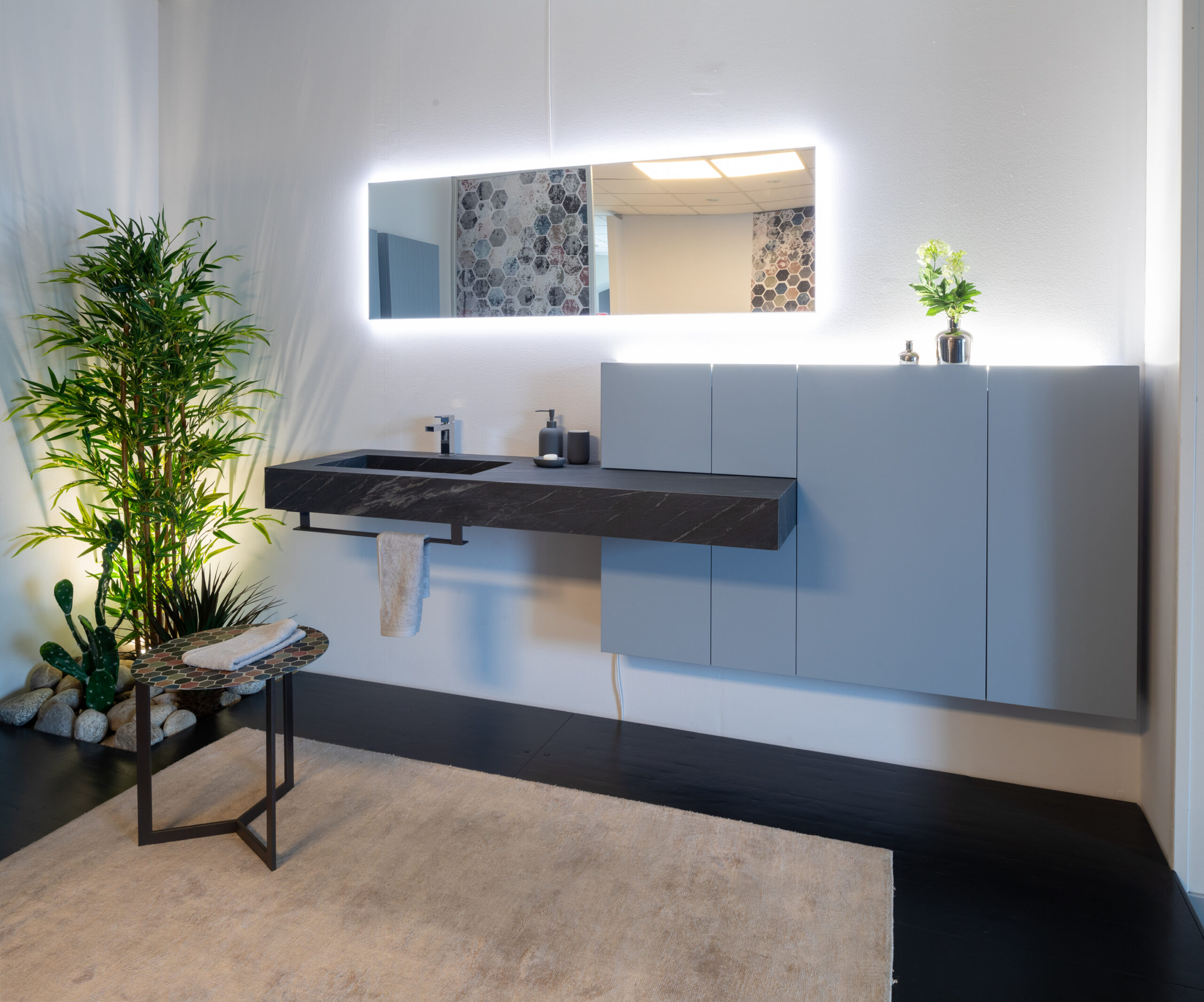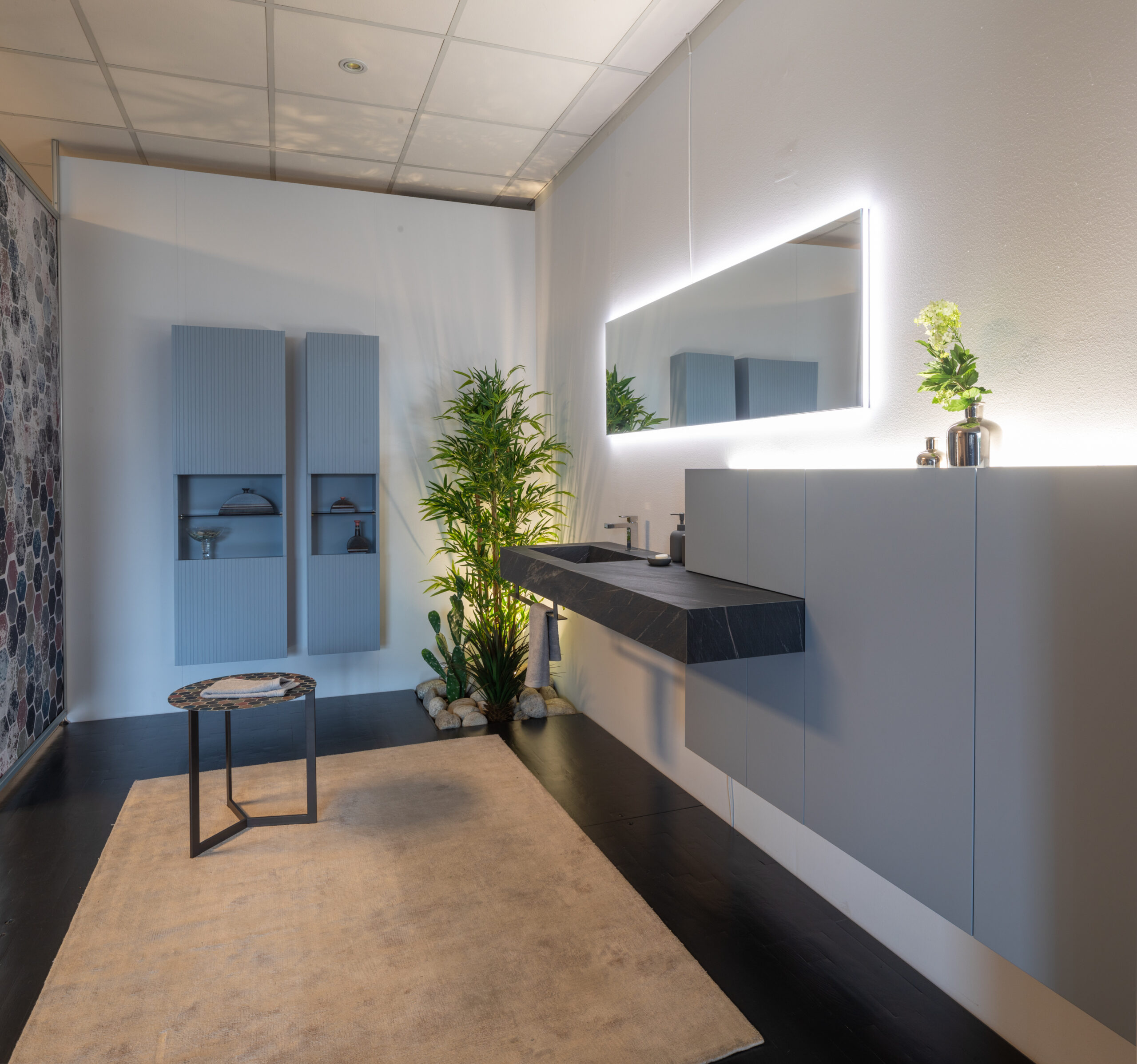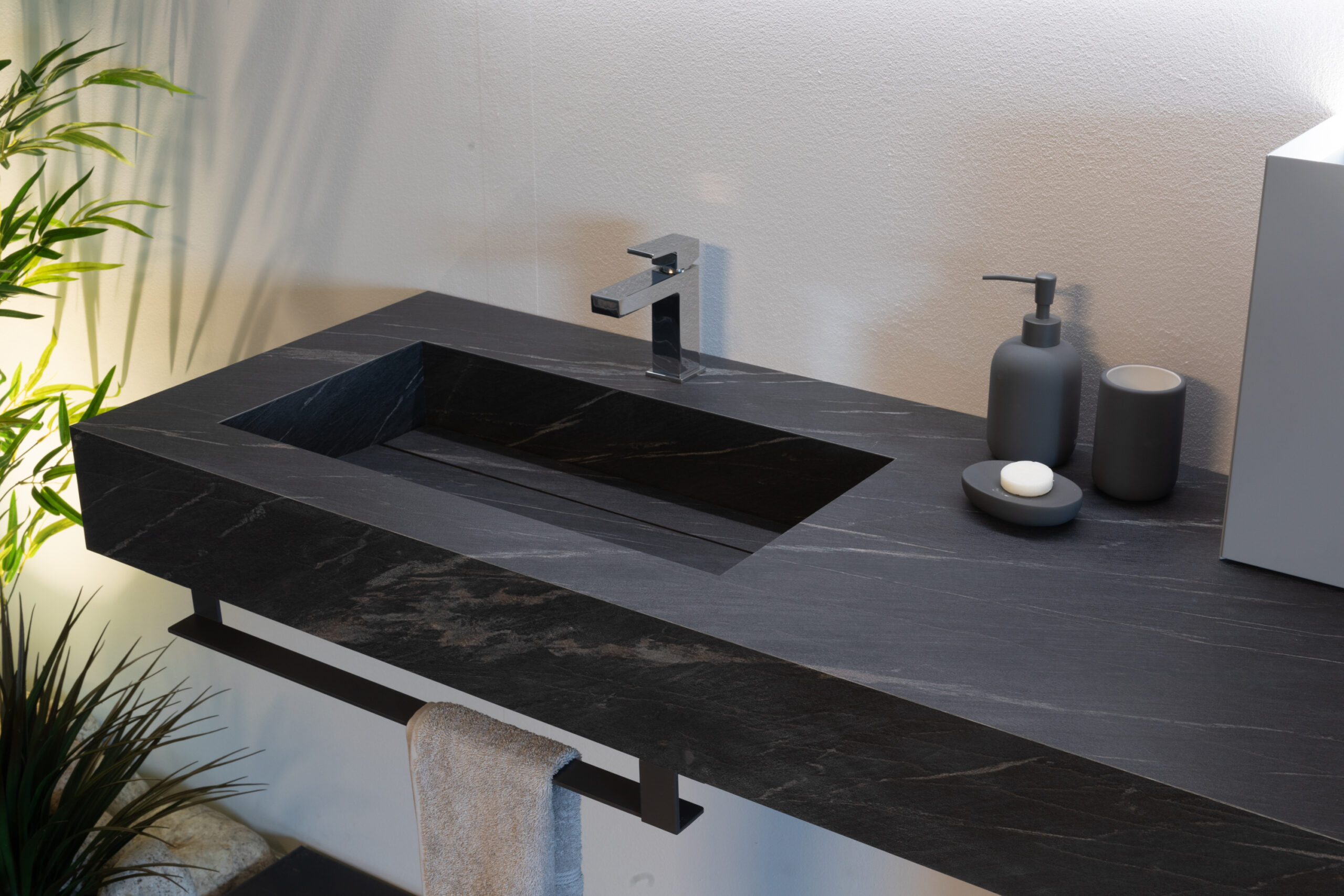 - piani in diversi materiali, tra cui Corian, melamminico, ecomalta, Fenix e HPL;