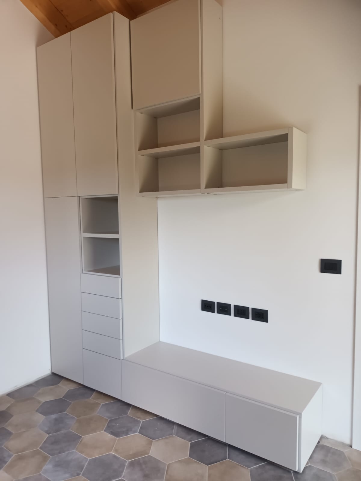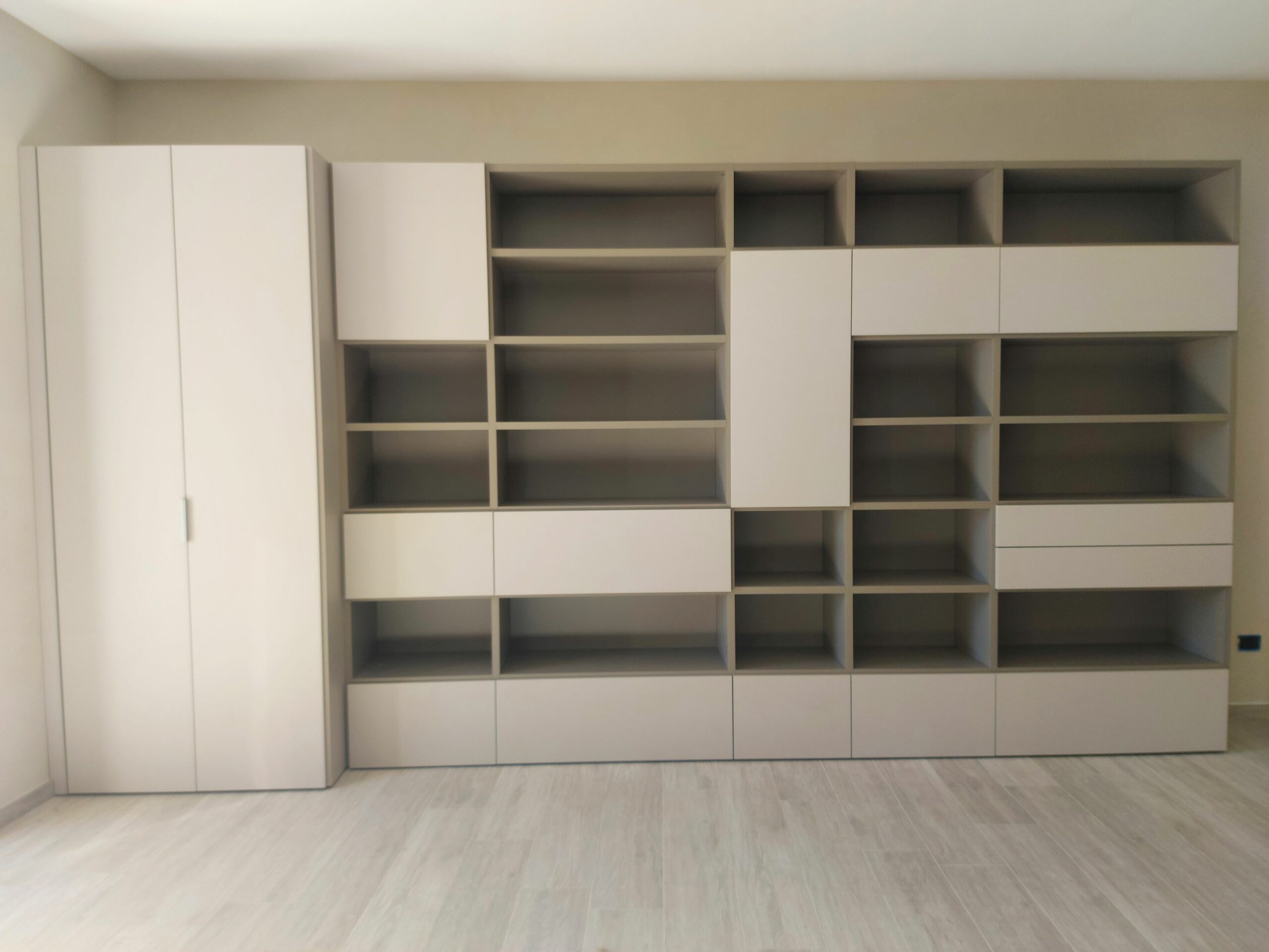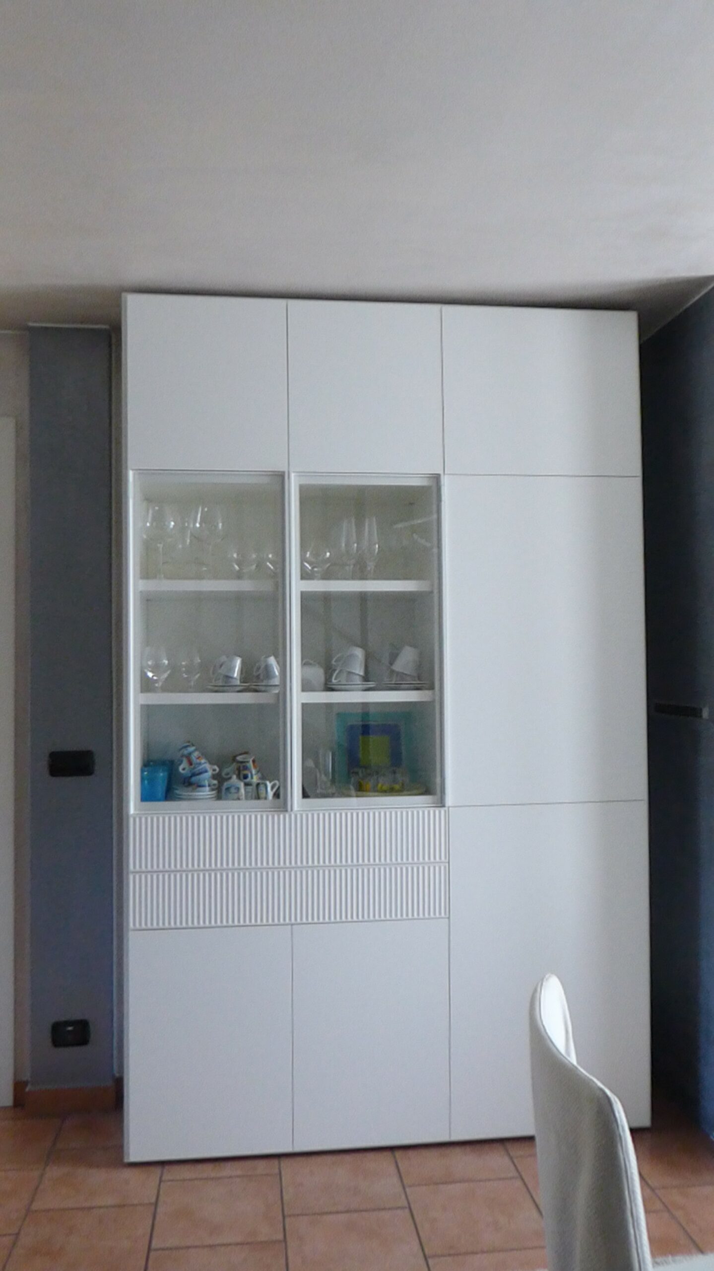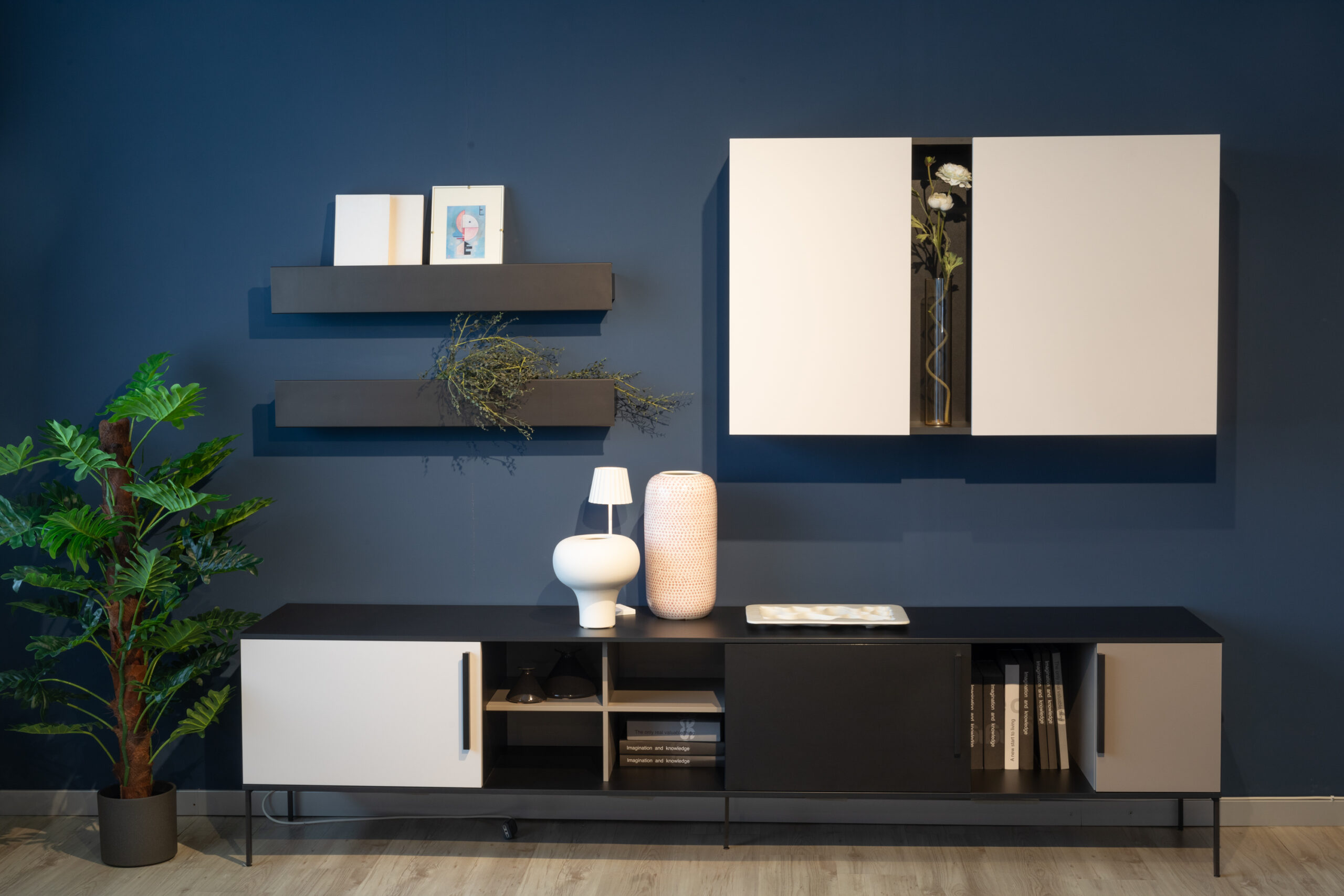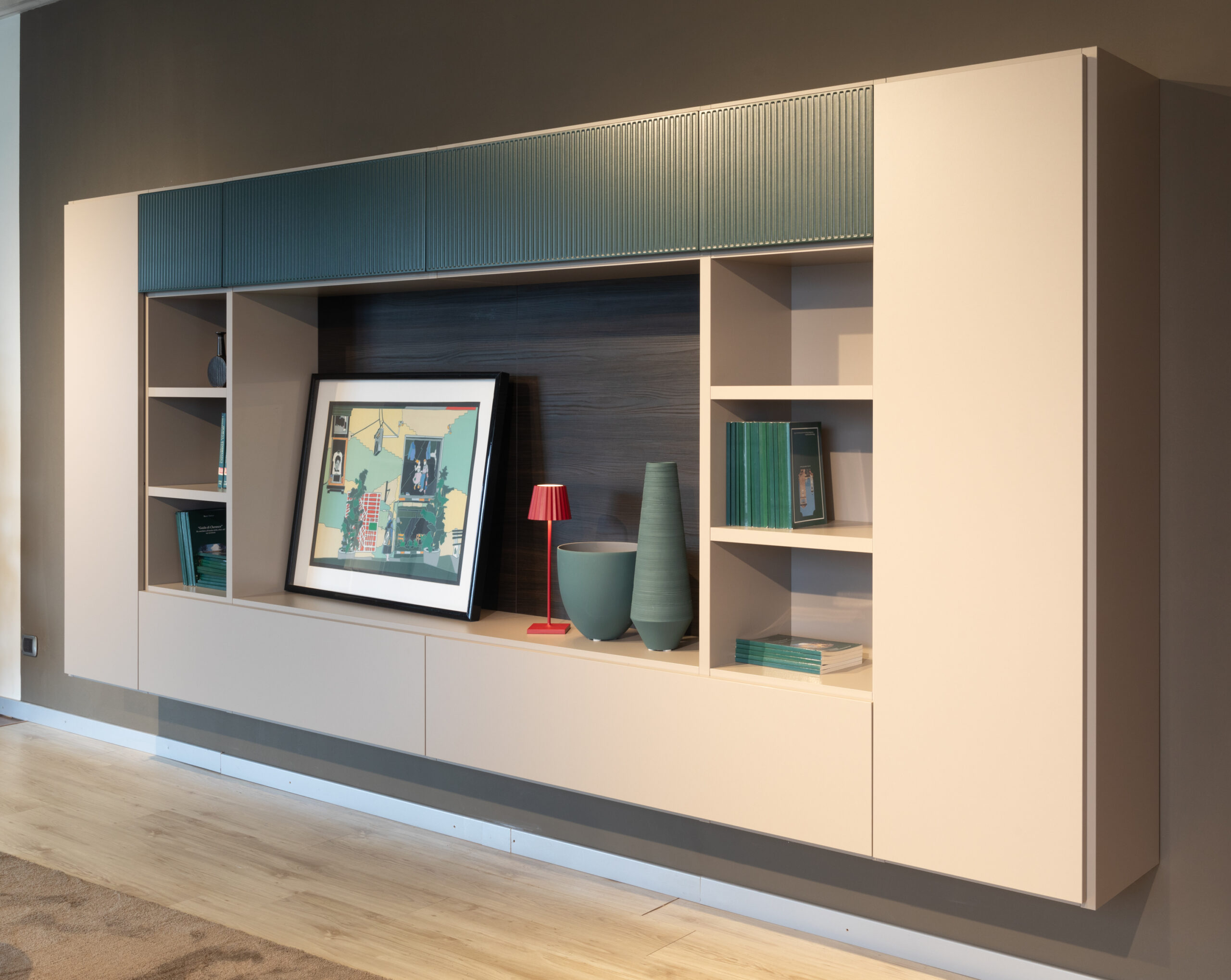 Puoi scegliere tra composizioni con basi e pensili in diverse dimensioni, sospese o a terra, soluzioni più contenitive o creative con vetrine e vani a giorno, librerie, pannellature e boiserie.