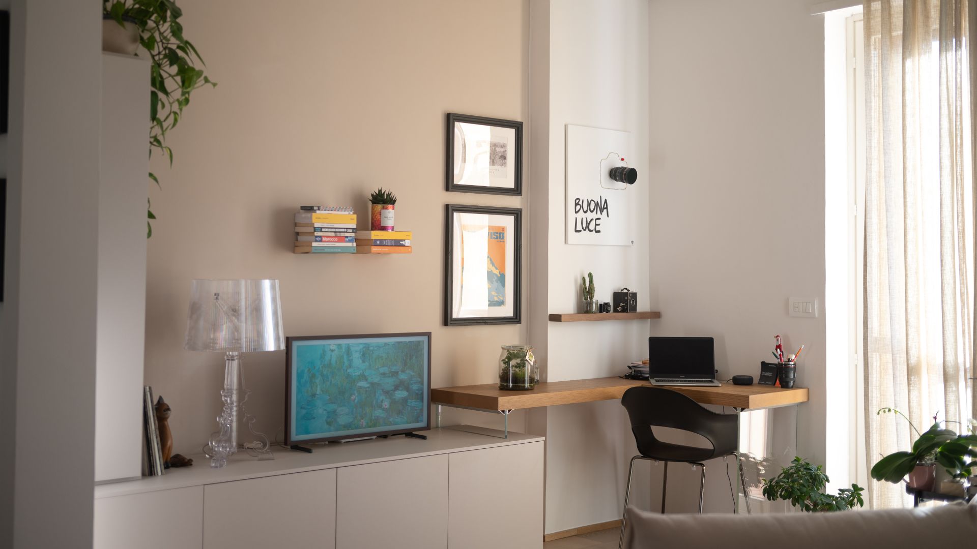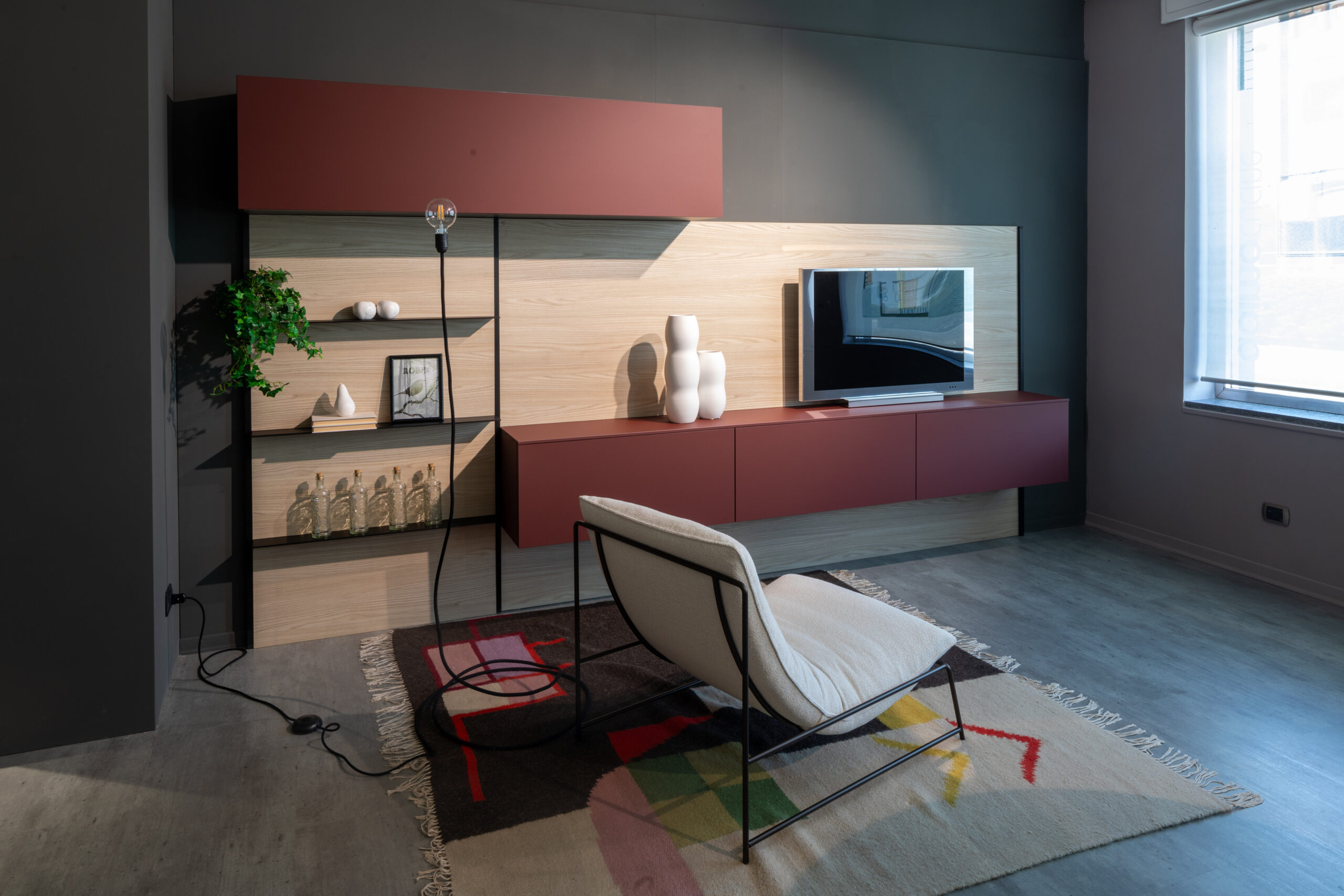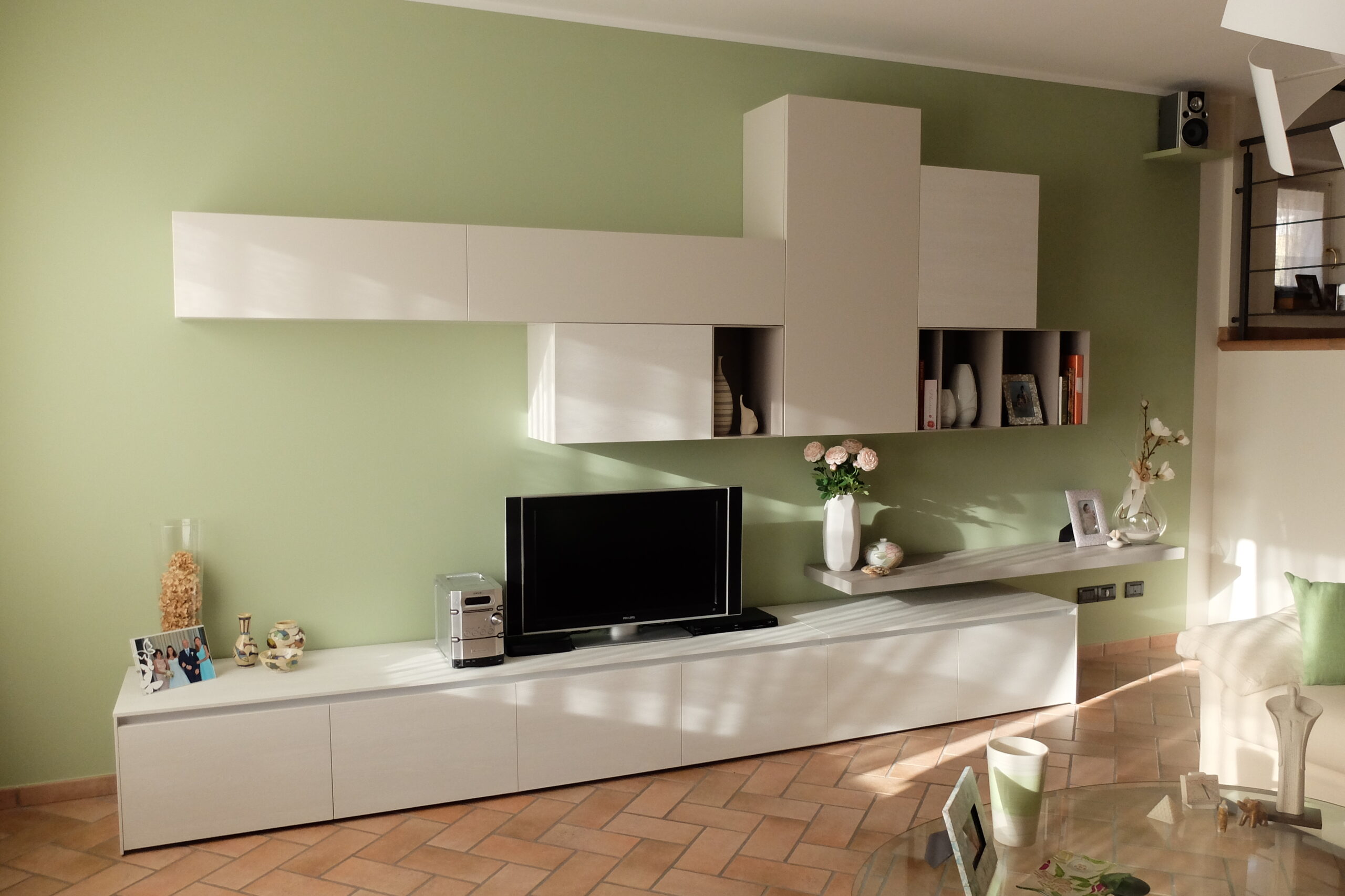 Composizioni eclettiche si adeguano al ritmo di vita in continuo cambiamento: una mensola o un’anta a ribalta possono diventare piano d’appoggio per esigenze lavorative.