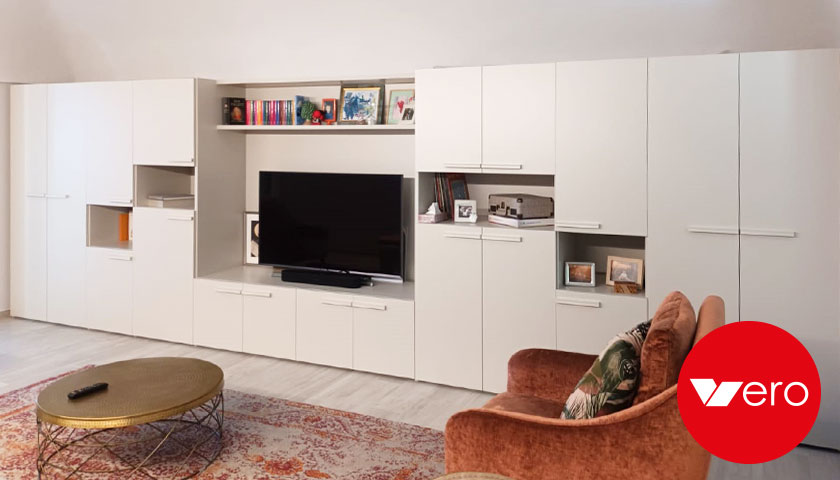 Dopo un primo impianto che ha soddisfatto il cliente, lo stesso si è rivolto a noi di Vero Arredamenti per richiedere la realizzazione di una composizione a parete e le poltrone dello stesso soggiorno.
